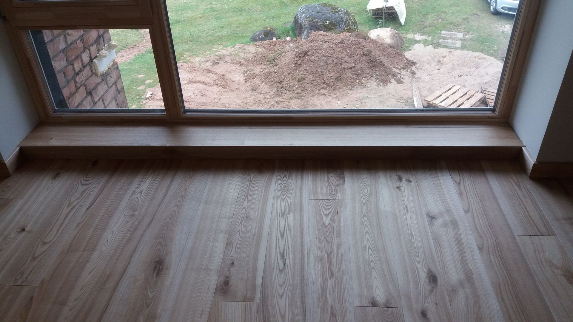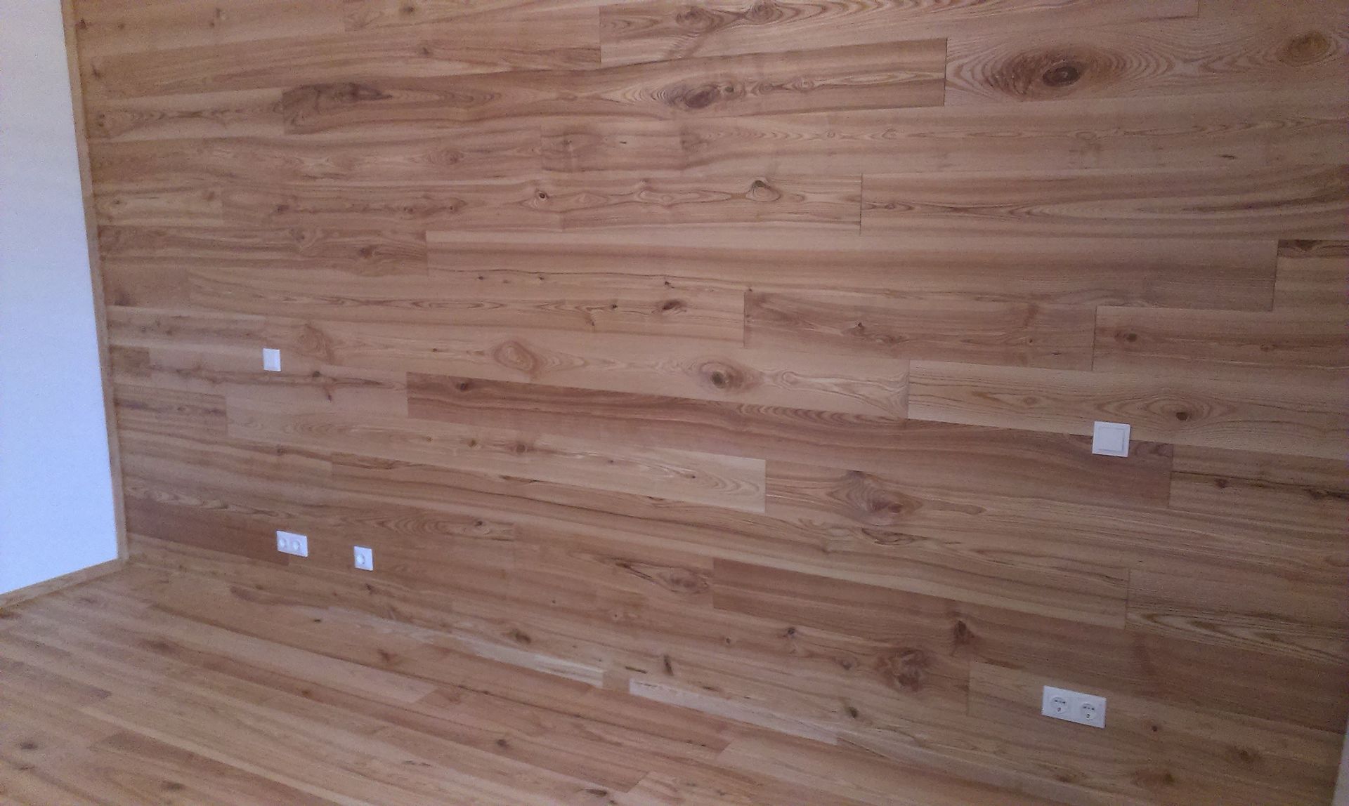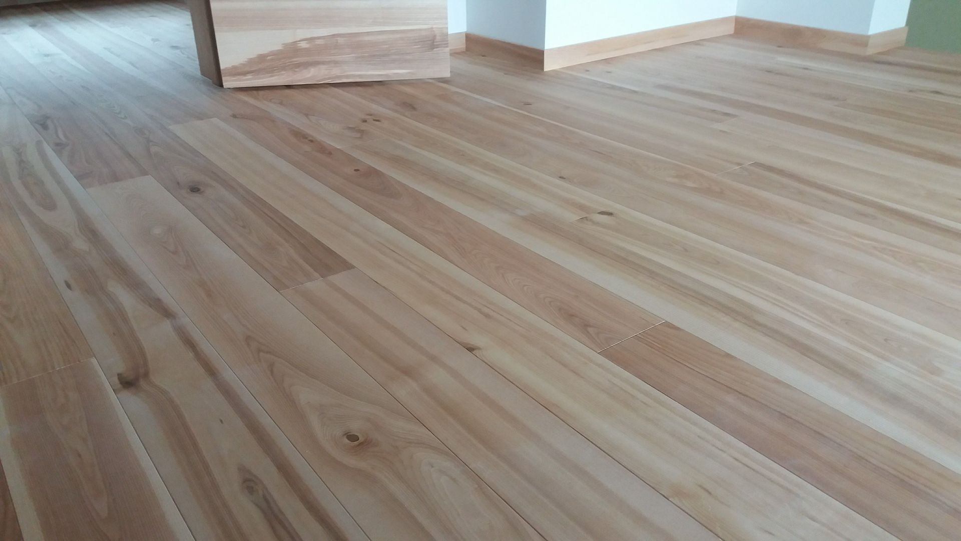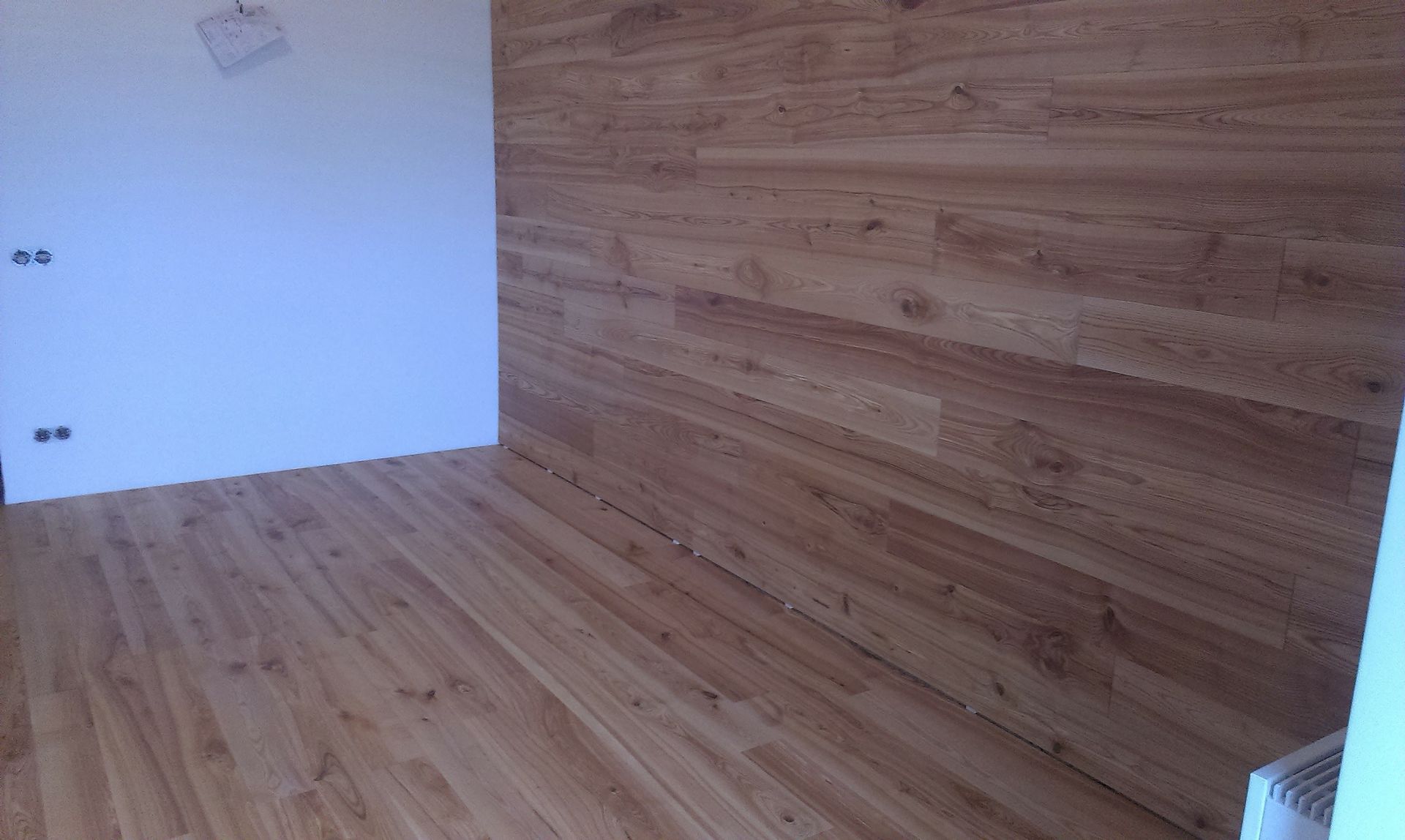 Oša grīdas dēļi bez zariem, ar nelielām dabīgām krāsu variācijām, kodola un aplievas koksne.